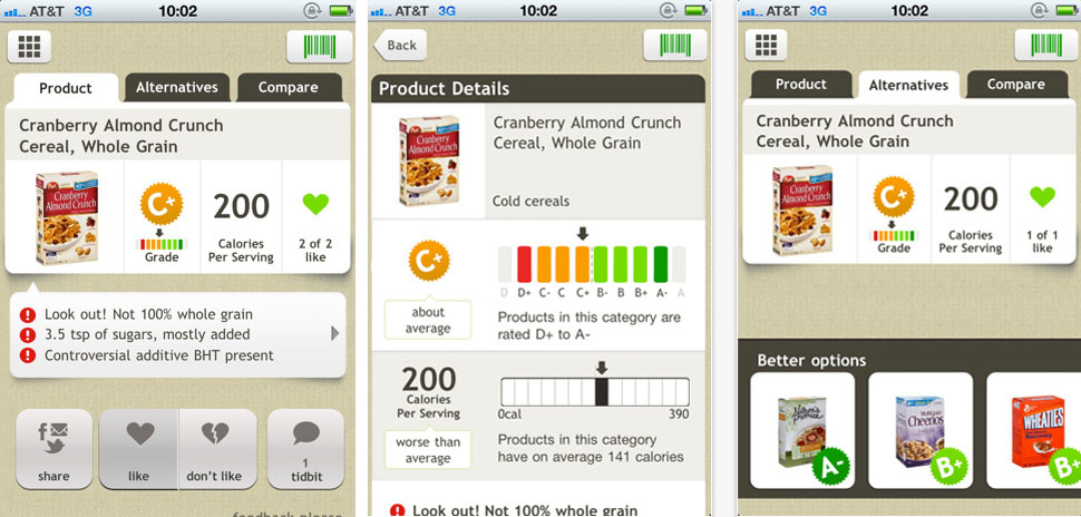 Tired of standing in the grocery aisles, comparing labels to figure out which product is healthier? Let this app do it for you. Scan the barcode of Dannon’s Activia Light yogurt, and you get a Fooducate “Grade” (B) with a list of pros and cons, and a list of “healthier alternatives”. While there is some work to be done (GG Brancrisps got a B+ while Wheat Thins have a B, and the several duplicates of food items), once it works out the kinks this app will be a grocery go-to (just like Market Melissa). Monterrey Bay Aquarium’s Seafood Watch (Free)