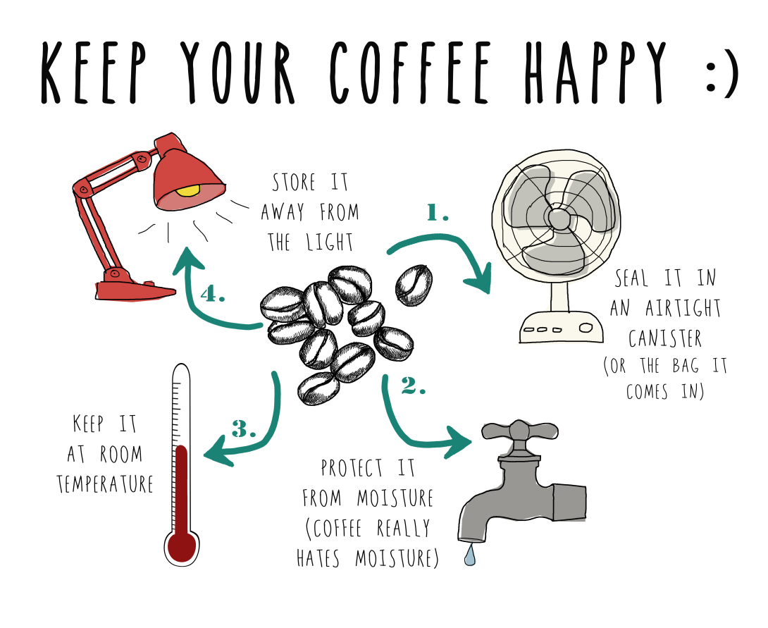 I quickly realized Caitlin was wrong. Seriouscoffee.com says, “the fridge is not the place to store coffee of any form.” Pact coffee explains, “you want to protect coffee from air, moisture, heat and light “I’m happy to say I am protecting my coffee from all four. However, the National Coffee Association (NCAUSA) says clear containers are to be avoided- oops. I do have my clear container but it’s in the cabinet so I’m thinking I’m safe. I know storing ground coffee isn’t ideal but I can’t do the daily grind thing. And in case you think the freezer is ok, it isn’t the place for coffee you’re taking in and out of the freezer each morning. You can freeze for long-term coffee storage.