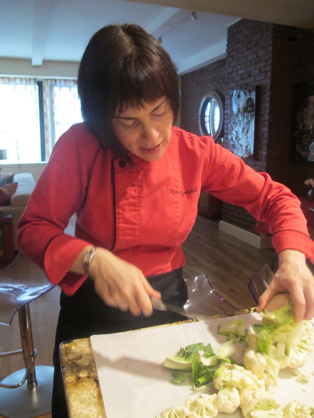 Last Friday, I got together with my Cooking Crew. Three to four times a year we get together and take a cooking class. This time, the class was with Myra Kornfield, cooking instructor, chef and the author of one of my favorite cookbooks The Healthy Hedonist. Myra sent over some menu options in advance; we all knew we were in for a treat.