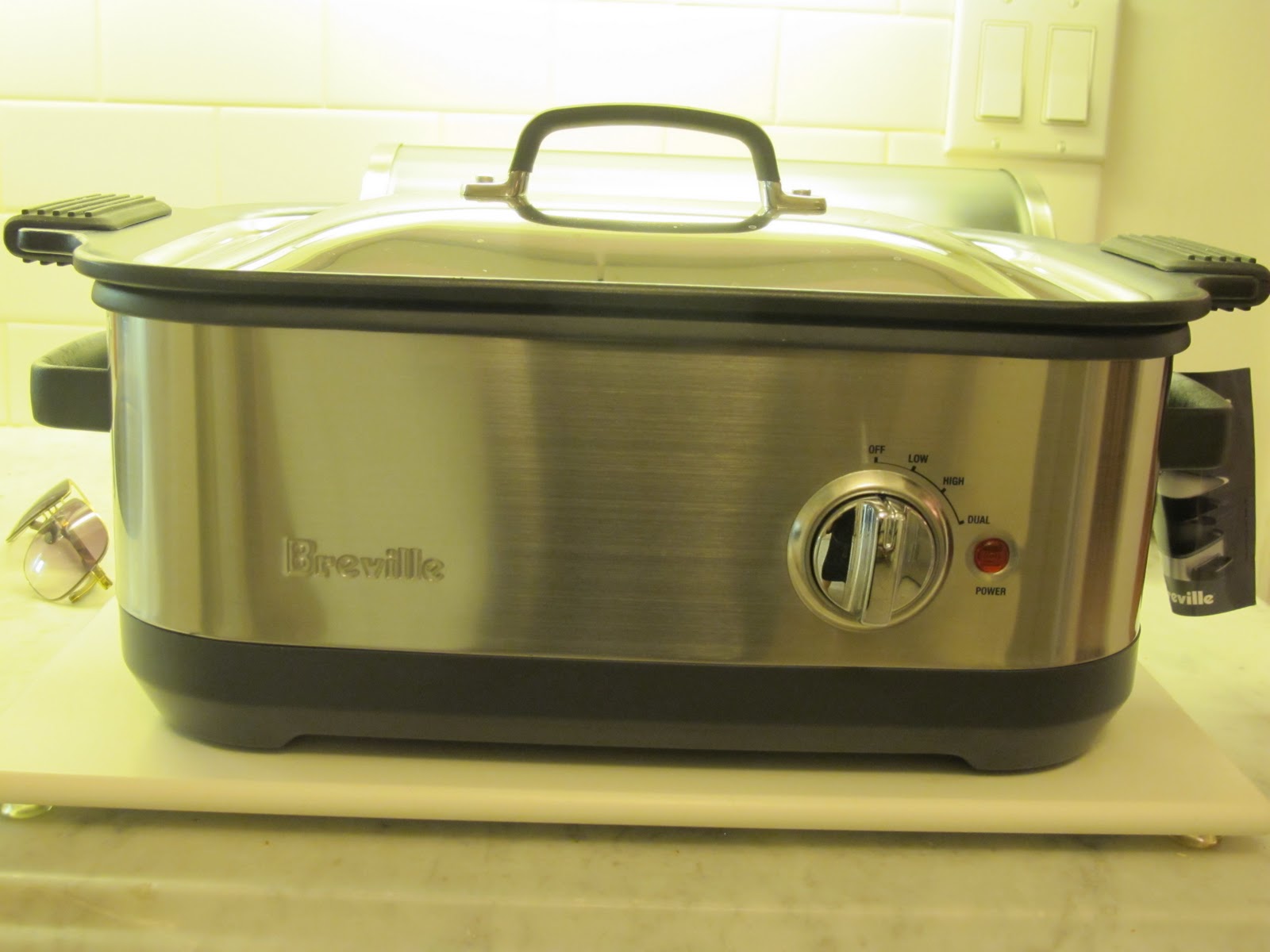 My beautiful new slow cooker (above) arrived shortly after last month’s post. I chose a Breville. I own a Breville juicer and wanted a larger slow cooker. I love that it has an insert so you can brown things before slow cooking. Because every class needs a textbook, I chose Make it Fast, Cook it Slow by Stephanie O’dea. Stephanie has a blog called