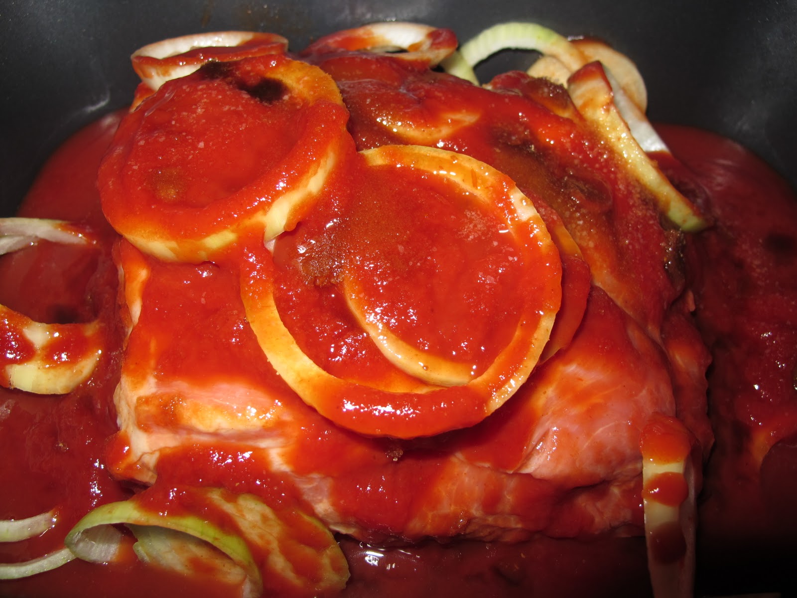 There was no question what my first recipe would be. We stop at a place on the way to Vermont that makes the best pulled pork on the planet. When I thought about slow cooking, stewy things came to mind. My book contains a pulled pork recipe but like a true nerd I had to cross-reference. I found that a pork butt roast was the cut to use. After being briefly nauseated I learned this was not in fact the pork “rear” and located an organic roast. I made the recipe on a Saturday; if you’re an impatient person I wouldn’t suggest slow cooking while you’re hanging around the house. Eight hours later, dinner was done. All four of us loved it.