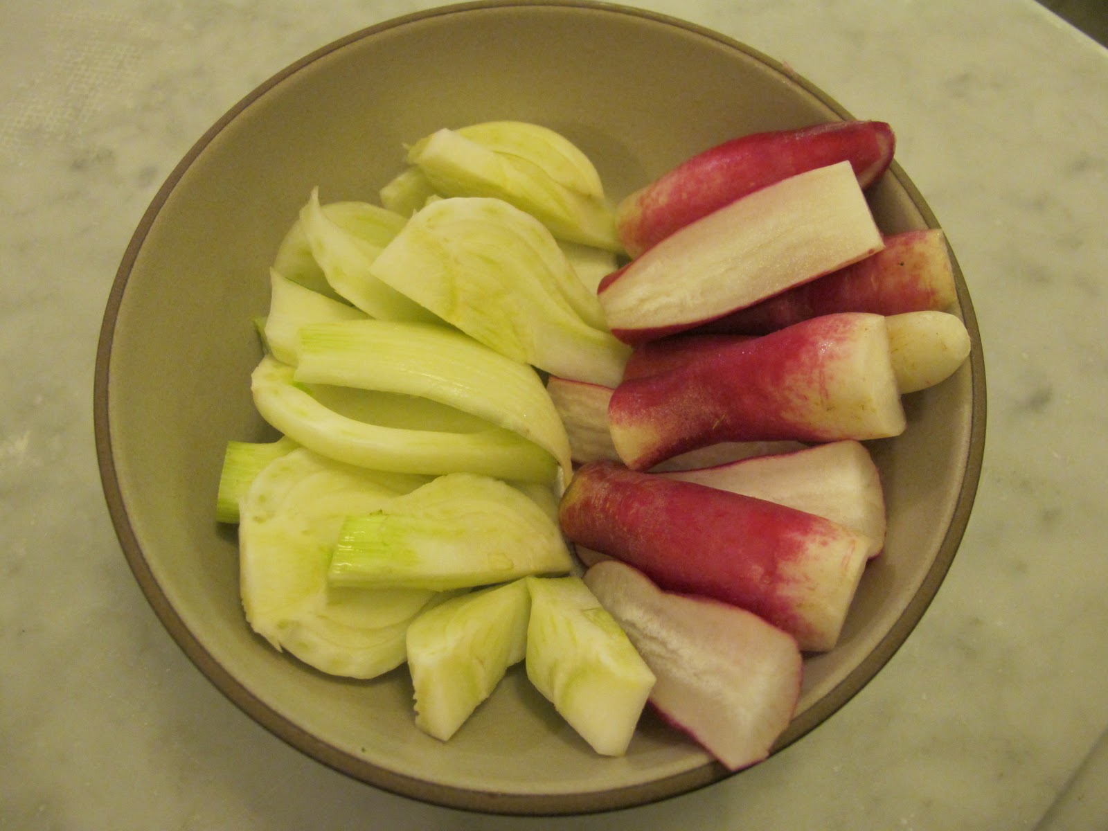 cooking snacks: fennel and finger radishes |