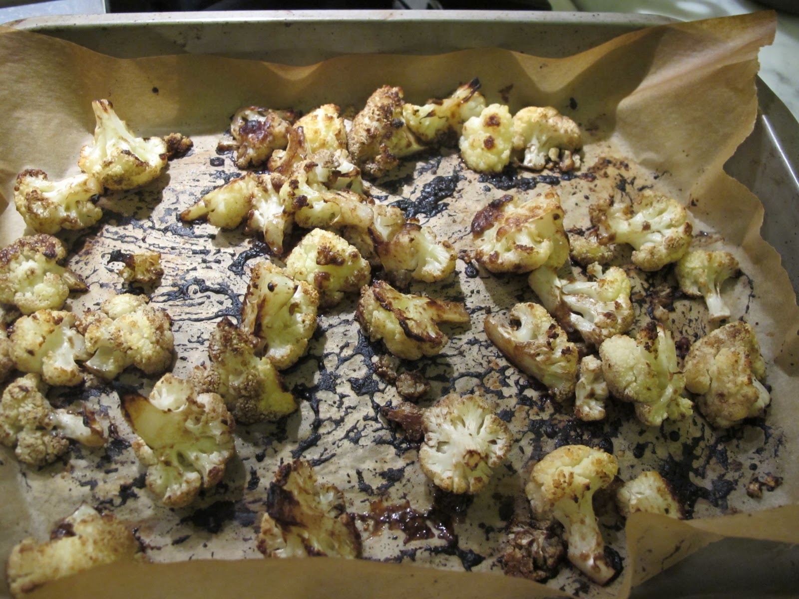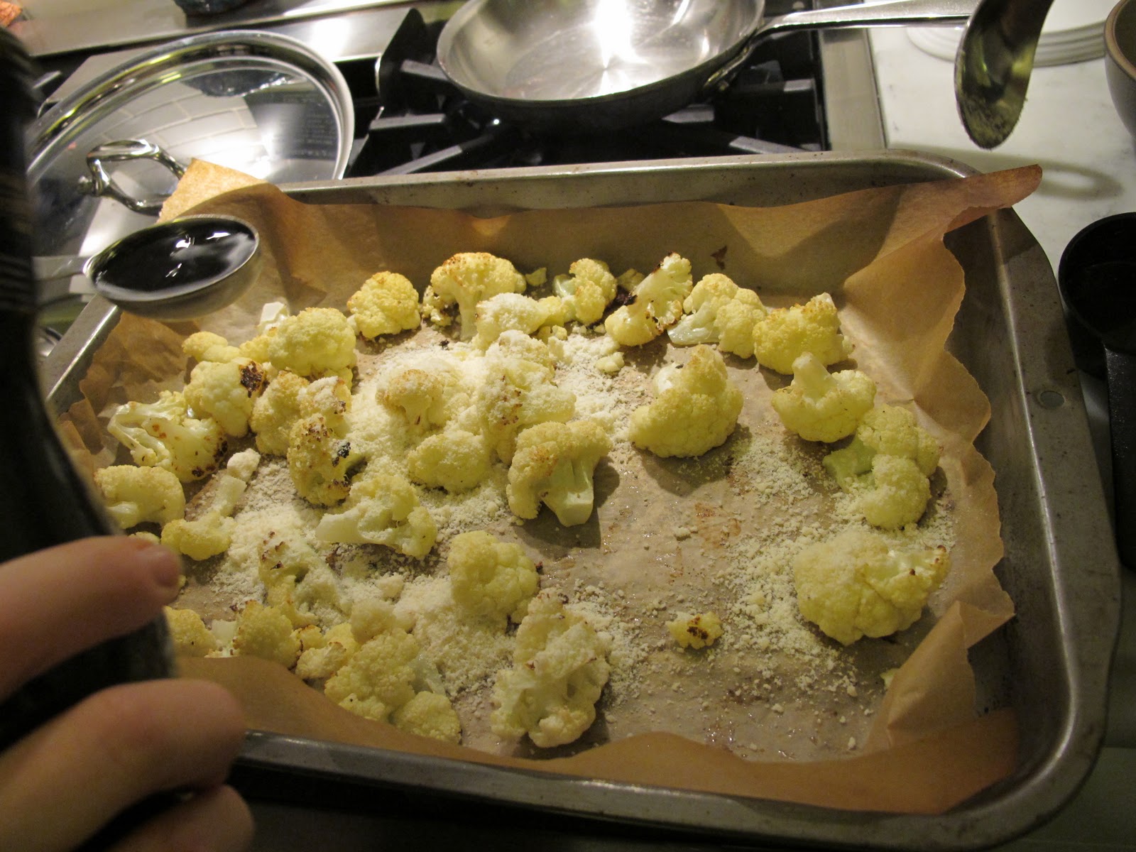 Stir the balsamic vinegar and Parmesan into the cauliflower and return to the oven for another 10 minutes.