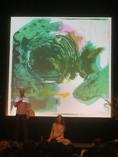 My friend suggested the idea and the photos online showed people on cushions in front of beautiful artwork or gazing out at the sculpture garden. When I arrived at the museum, we were told to go “down two flights” which seemed odd. “I’m already claustrophobic” my friend told me. We followed the crowd to the theatre at the museum. It was dark, we were in seats, there was a photo of artwork called “Radius” on the stage’s screen. I was anti already.