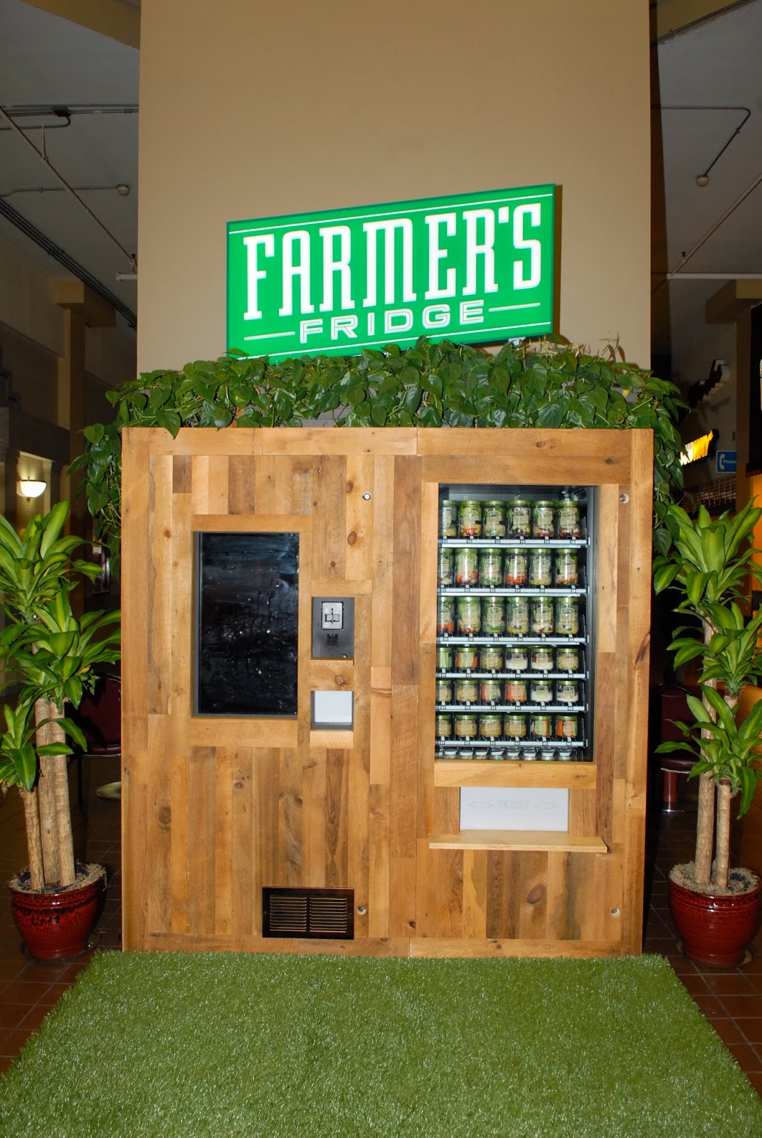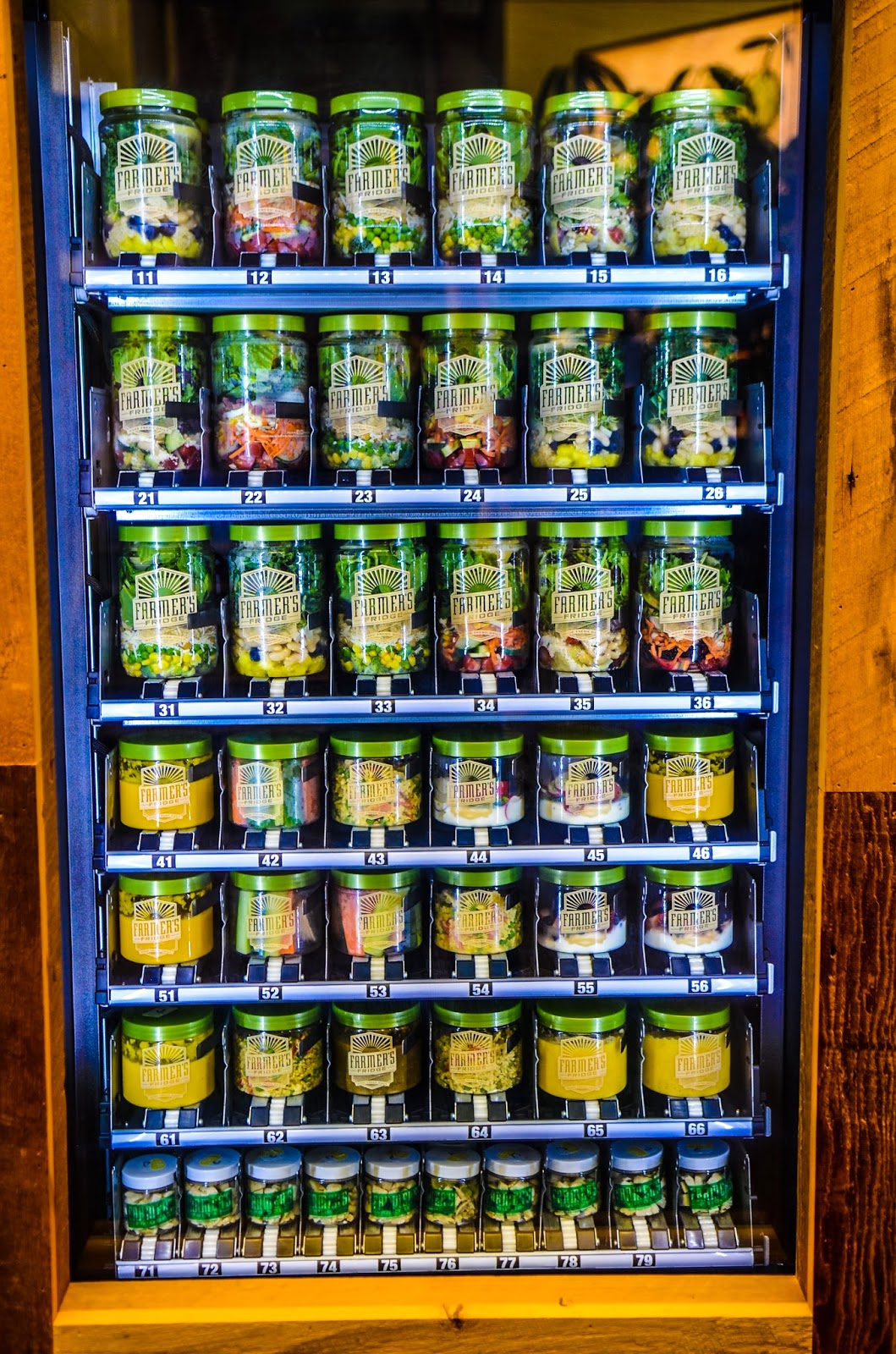 Well that’s about to change, last week Farmer’s Fridge launched.Farmer’s fridge offers fresh salads and snacks and restocked every morning. You’ll recall last week Joanna posted about Salad in a Jar, Farmer’s Fridge offers multiple, beautiful jarred options in recyclable jars. Farmer’s fridge has also partnered with SPE Certified to confirm the quality of their ingredients. Kale salad or hummus and veggies with the push of a button? Pretty amazing.