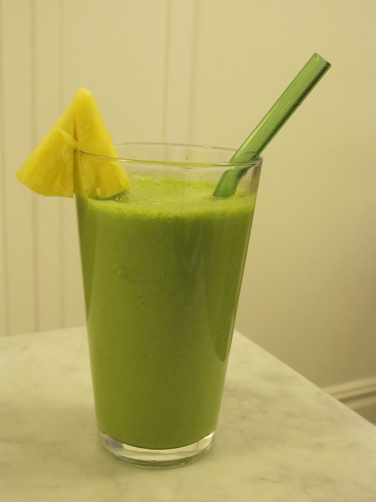 Add water and then rest of the ingredients to Vitamix or blender capable of kale crushing. Blend. Thanks to one of my clients for tipping me off to the pineapple/cilantro combo.
