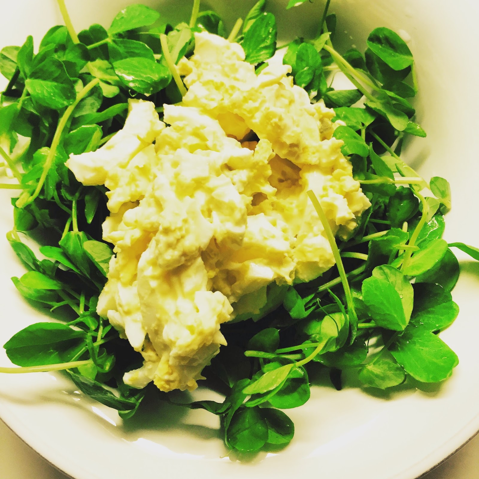 So I’ve found a mayo substitute I really like (and usually I don’t like any sort of food substitute) Avocado Mayo (avocado oil, eggs, vinegar and salt). One of my favorite easy lunches is 2 hard-boiled eggs (I make these 6 at a time and usually have on hand) mashed with avocado mayo over greens. In this photo I used my boys’ fave pea shoots. The egg salad is satisfying and feels a little indulgent. And this is a mayo that’s ok to love.
